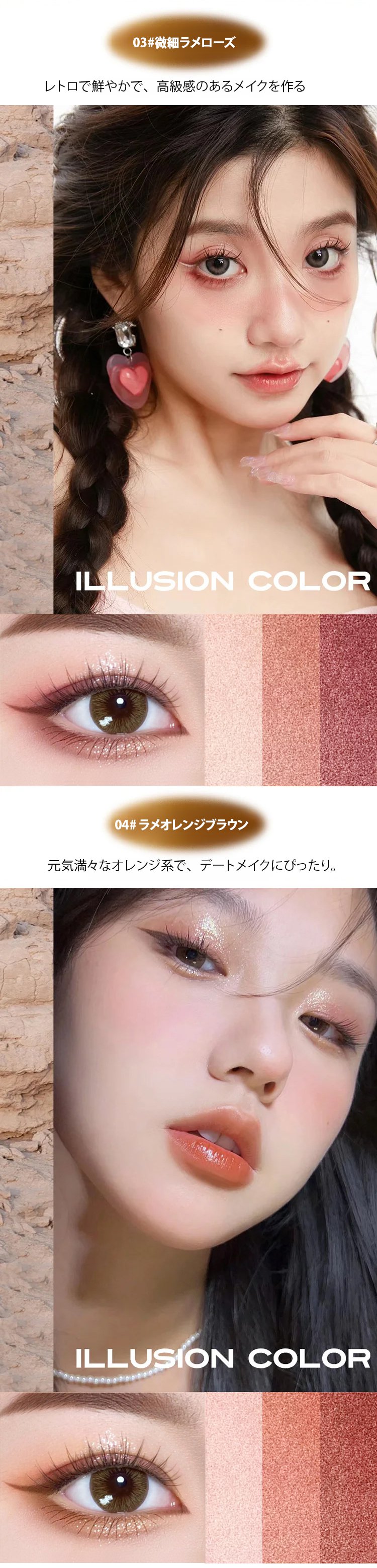 カラー:01#パールアースカラー【人気色】, 02#マットアースカラー【人気色】, 03#ラメローズ, 04#ラメオレンジブラウン