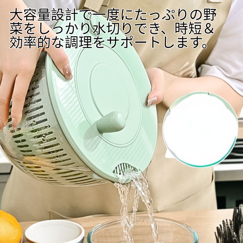 ● 大容量設計で一度にたっぷりの野菜をしっかり水切りでき、時短&効率的な調理をサポートします。